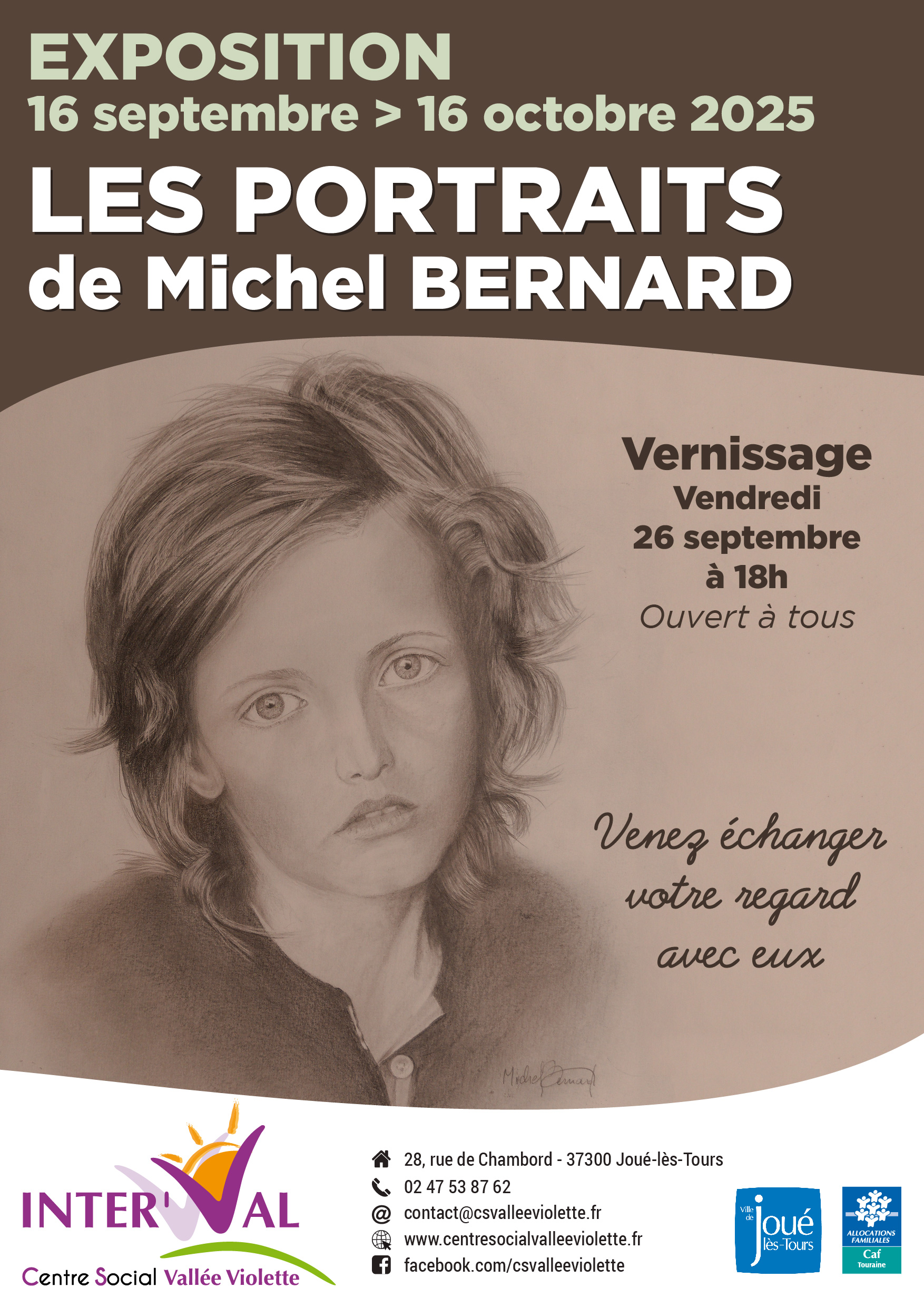 Régulièrement, vous pouvez admirer dans les couloirs du Centre social des expositions sur des thèmes divers et variés. Pour la première expo de la saison 2025-2026, nous mettons à l’honneur un habitant du quartier de la Vallée Violette jusqu’au 16 octobre : Michel BERNARD. Venez plonger votre regard dans les yeux de ses portraits.